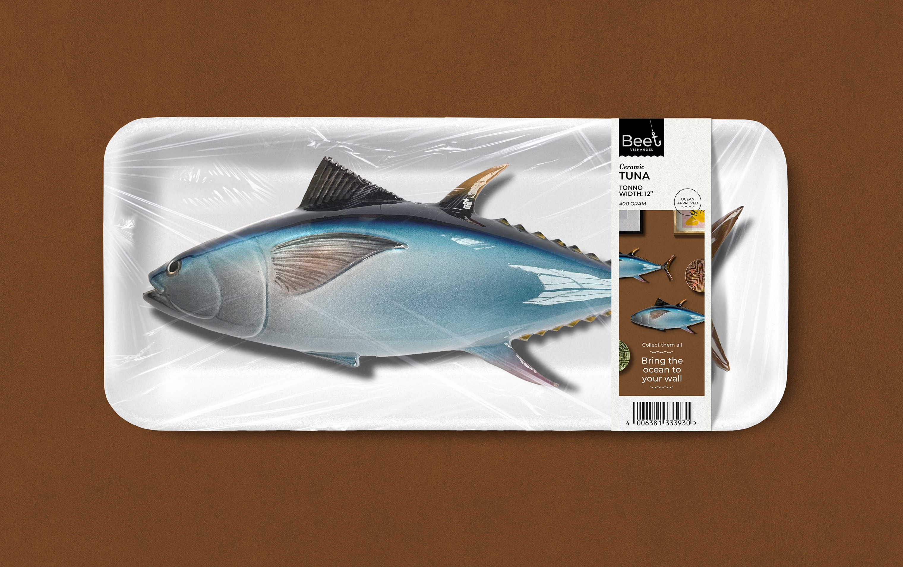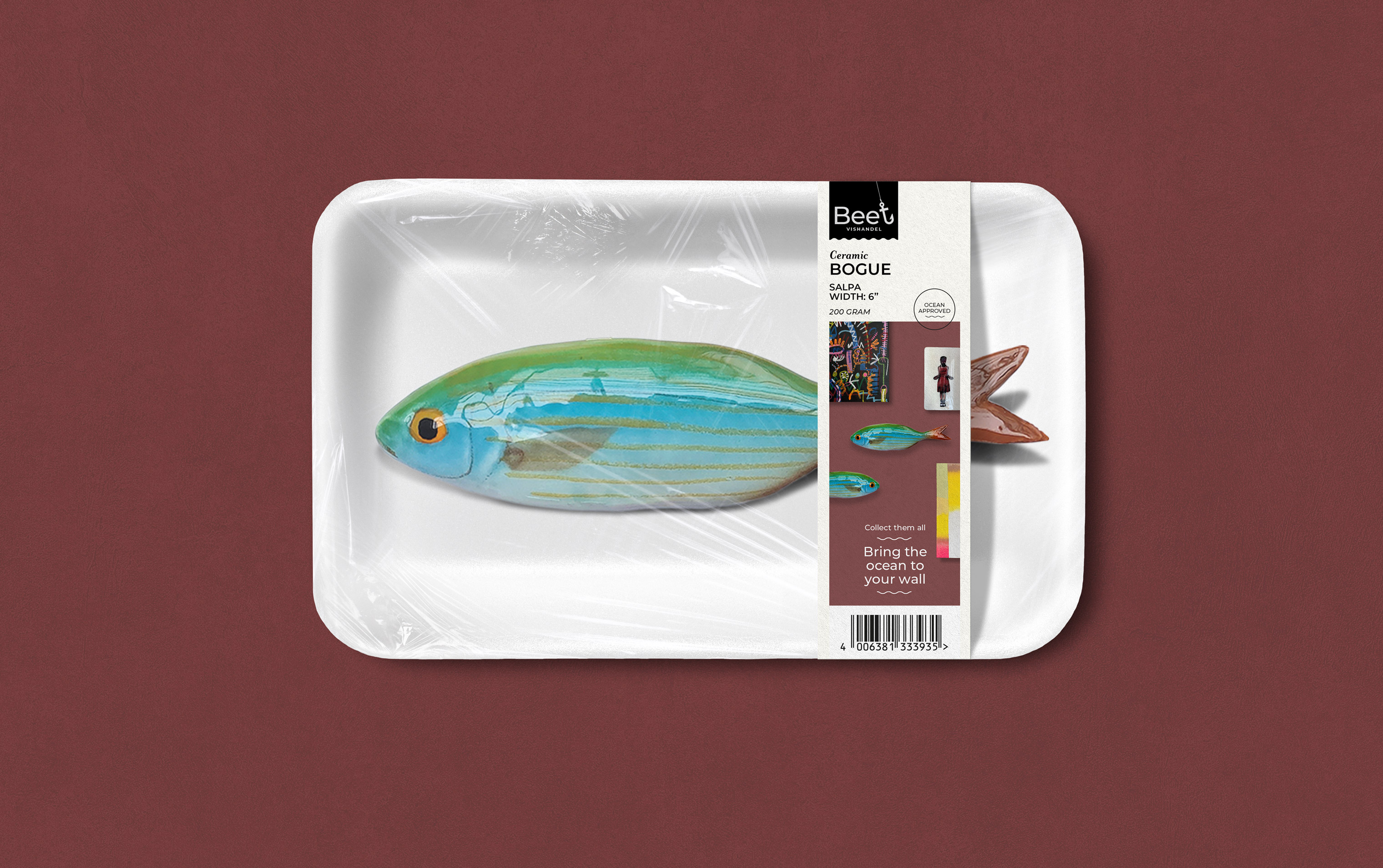 Studio Kluif has developed a new packaging line for Beet. The handmade ceramic fish that can be used as wall decoration have been made as true to nature as possible.